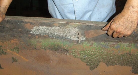 4. Draining slag at the mouth of the ladle with a small iron rod.
