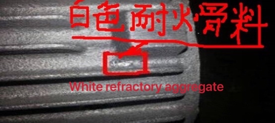 B. Hot melt of ladle refractory (slag also called sugar slag), casting surface presents black slag.
